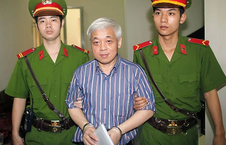 Cảnh sát dẫn giải bị cáo Nguyễn Đức Kiên ra tòa. Ảnh: TTXVN