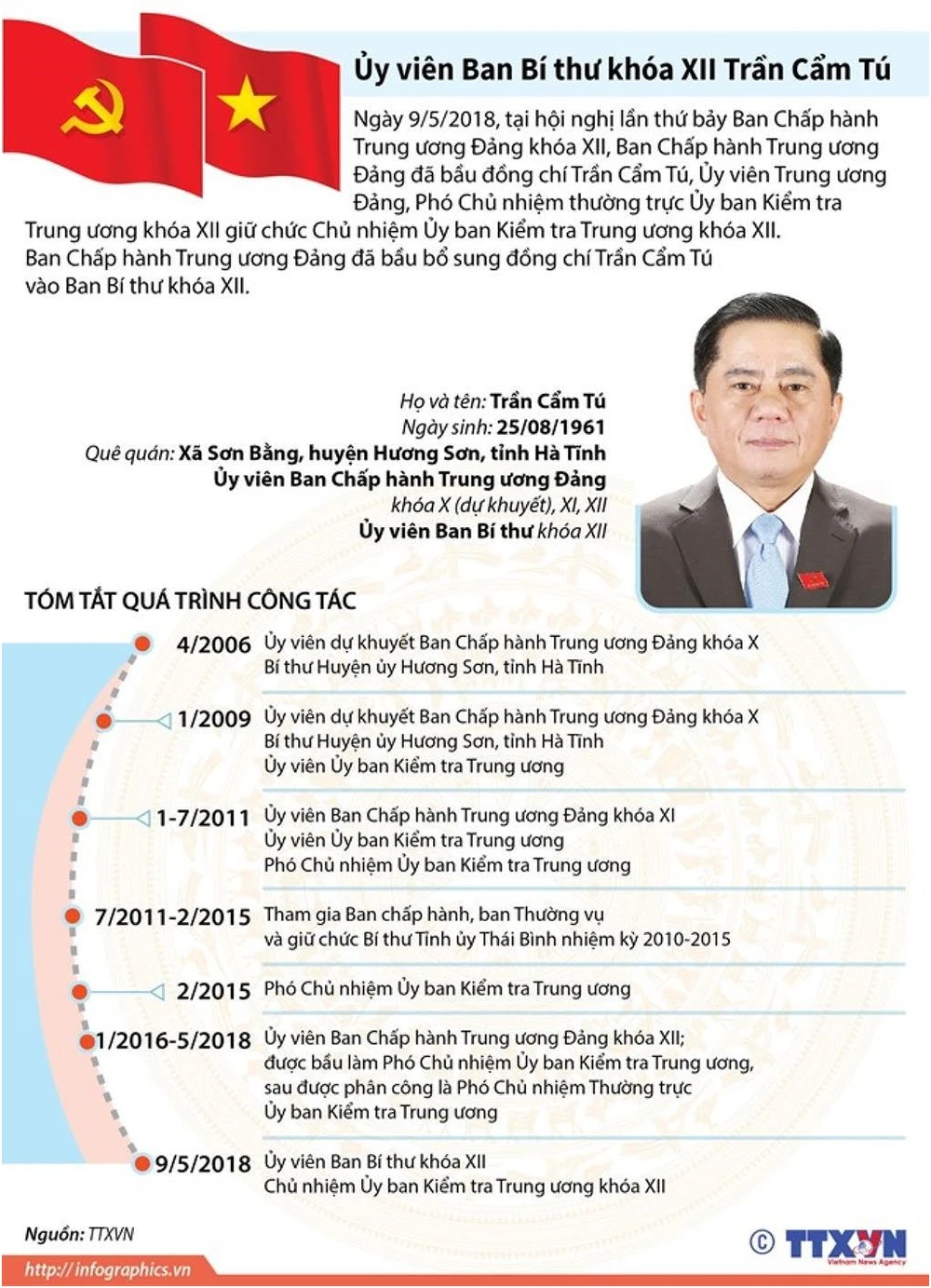 Ban Chấp hành Trung ương Đảng đã bầu ông Trần Cẩm Tú (Ủy viên Trung ương Đảng, Phó Chủ nhiệm Thường trực Ủy ban Kiểm tra Trung ương khóa XII) giữ chức chủ nhiệm Ủy ban Kiểm tra Trung ương khóa XII; bầu ông Hoàng Văn Trà (Phó Bí thư Tỉnh ủy, Chủ tịch UBND tỉnh, Trưởng Đoàn đại biểu Quốc hội khóa XIV tỉnh Phú Yên) giữ chức ủy viên Ủy ban Kiểm tra Trung ương khóa XII.
