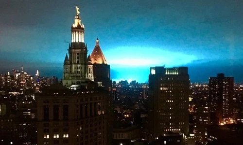 Nhiều người sống ở quận Manhattan, New York đã choáng váng khi nhìn thấy bầu trời bỗng chuyển thành màu xanh neon kỳ lạ. Sự việc xảy ra tầm 9 giờ tối 27-12.