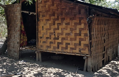 Căn chòi rách nát hở trước trống sau là nơi ngủ và sinh hoạt của chín người trong gia đình. Ảnh: PHƯƠNG NAM