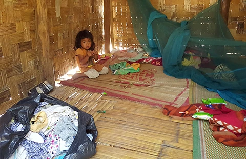 Đứa con gái của Srín sinh ra đến giờ chỉ ở trong rừng, trong căn chòi này. Ảnh: PHƯƠNG NAM