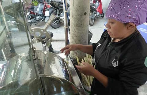 Từ khi được cấp xe nước mía, cuộc sống của chị Rohymah đỡ vất vả hơn trước. Ảnh: THANH TUYỀN