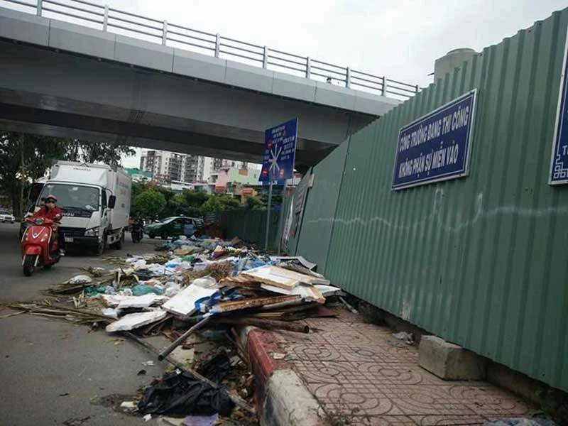 Đây không chỉ là rác sinh hoạt mà có nhiều cây sắt, tấm vách lớn nằm ngổn ngang, chìa ra cả lòng đường. Bãi rác này không chỉ mất vệ sinh, mất mỹ quan đô thị mà còn gây nguy hiểm cho người đi đường lỡ không may vướng vào có thể té, thương tích.