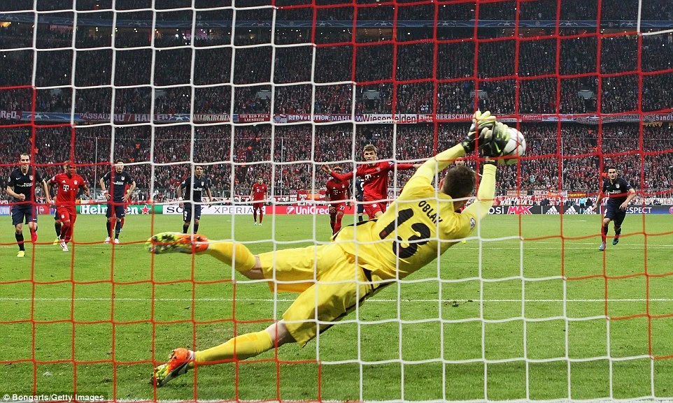 Phút cuối cùng, Alaba có pha sút ngoài vòng cấm bóng chạm người cầu thủ Atletico đổi hướng nhưng thủ thành Oblak đã phản xạ xuất thần bay người đẩy bóng ra và Bayern Munich dưới thời Pep Gurdiola tiếp tục lỡ hẹn với trận chung kết Champions League mùa thứ 3 liên tiếp bởi 3 đội bóng Tây Ban Nha khác nhau.