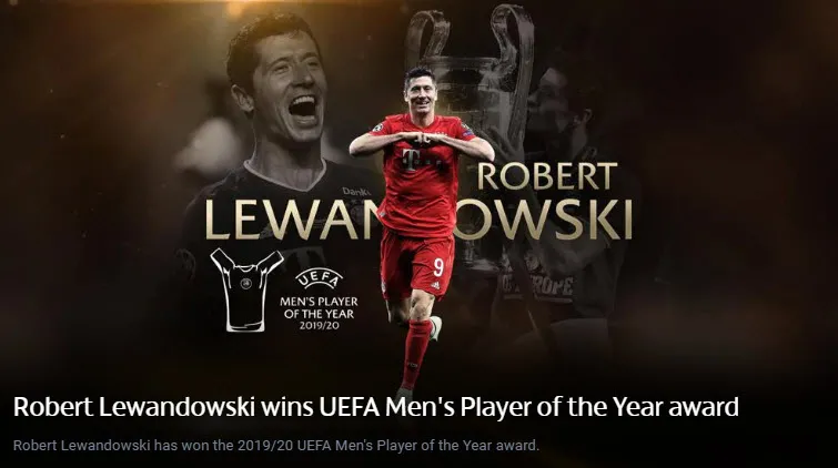 Lewandowski là cầu thủ nam xuất sắc nhất năm. ẢNH: UEFA