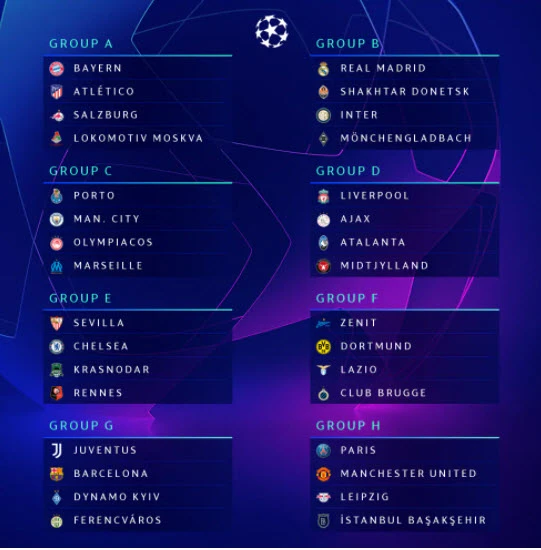 Kết quả bốc thăm vòng bảng Champions League. ẢNH: UEFA