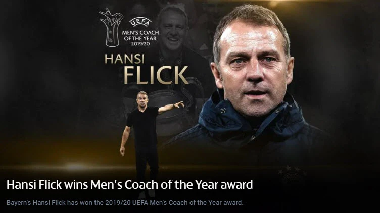 Hansi Flick là HLV hay nhất năm. ẢNH: UEFA