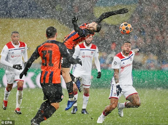 Trận quyết đấu giữa Lyon và Shakhtar Donestk diễn ra trong thời tiết khắc nghiệt khi tuyết phủ trắng mặt sân.