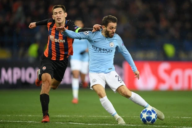 Tại bảng F đội bóng của HLV Pep Guardiola đã giành được chiến thắng đầy thuyết phục khi đến làm khách trên sân của Shakhtar Donetsk. Sau thời gian đầu thi đấu thăm dò thì chỉ trong vòng 5 phút hiệp 1 các cầu thủ của Man City đã ghi liền hai bàn thắng ở phút 30 và 35 do công của David Silva và trung vệ Laporte để tạm vươn lên dẫn trước 2-0 trước khi hiệp 1 kết thúc.