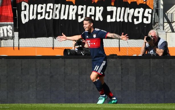 Đến phút 38, lại là Kimmich đi bóng lắt léo xé nát hành lang trái Augsburg rồi căng ngang vào để Bernat dùng gót chuyền cho James Rodriguez dứt điểm cận thành nâng tỉ số lên 2-1 cho Bayern Munich.