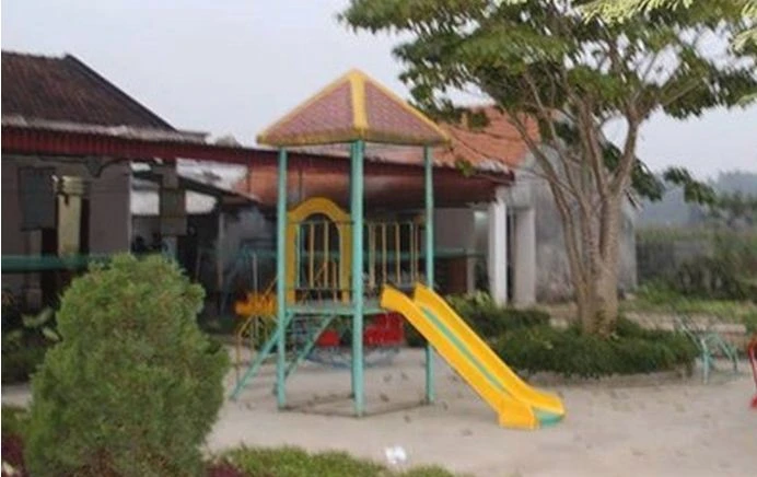 Theo hiệu trưởng và các giáo viên trình báo, chân trò chơi cầu trượt là nơi học sinh Nguyễn Hà Phương Anh nầm bất động rồi tử vong. Ảnh: H.P