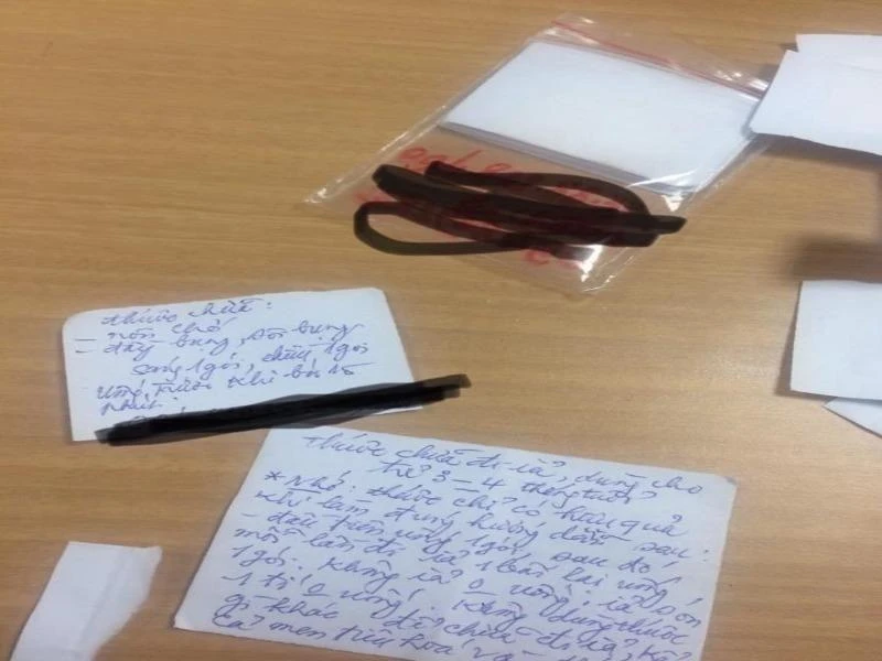 Gia đình đưa bé đi khám tại phòng khám tư và được kê đơn hai túi thuốc bột màu vàng chữa nôn và đi ngoài, có hướng dẫn kèm theo. Được biết trước đây chị gái bé cũng bệnh tương tự, đã đi khám tại phòng khám và khỏi bệnh sau khi được bác sĩ cho thuốc về uống.