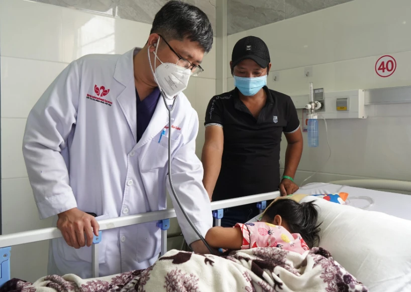 Bác sĩ kiểm tra sức khỏe cháu M. Ảnh: BVCC