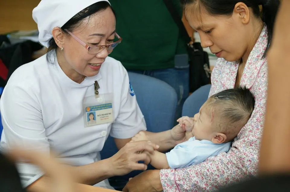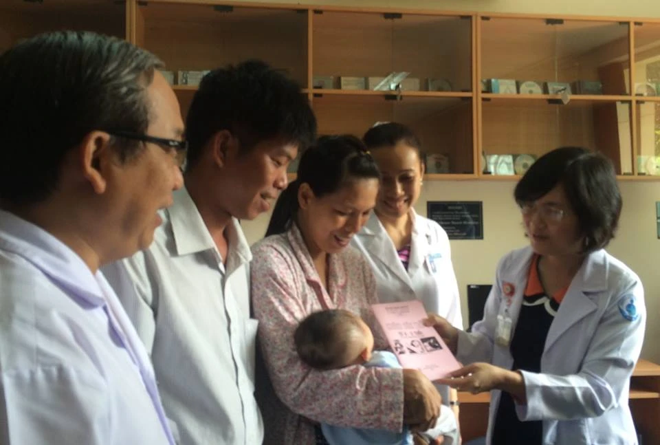 Các bác sĩ thăm khám cho bé Phát rất cẩn thận, chu đáo. Ảnh: TÙNG SƠN