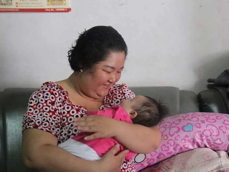 Chị Hằng rất vui từ khi được chăm sóc bé Minh Tâm.