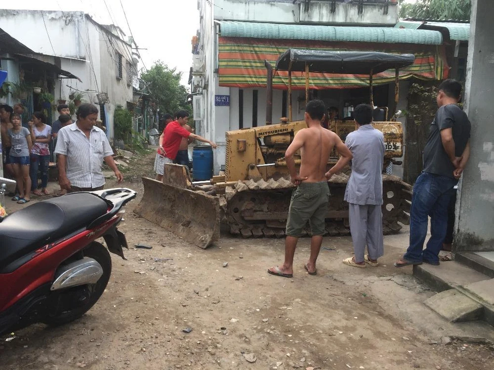 Khoảng 16 giờ 30 chiều 12-8, tại hẻm 70/551 đường Lê Văn Khương, phường Hiệp Thành, quận 12 (TP.HCM), nhiều trẻ leo lên một máy gạt đất để chơi đùa.