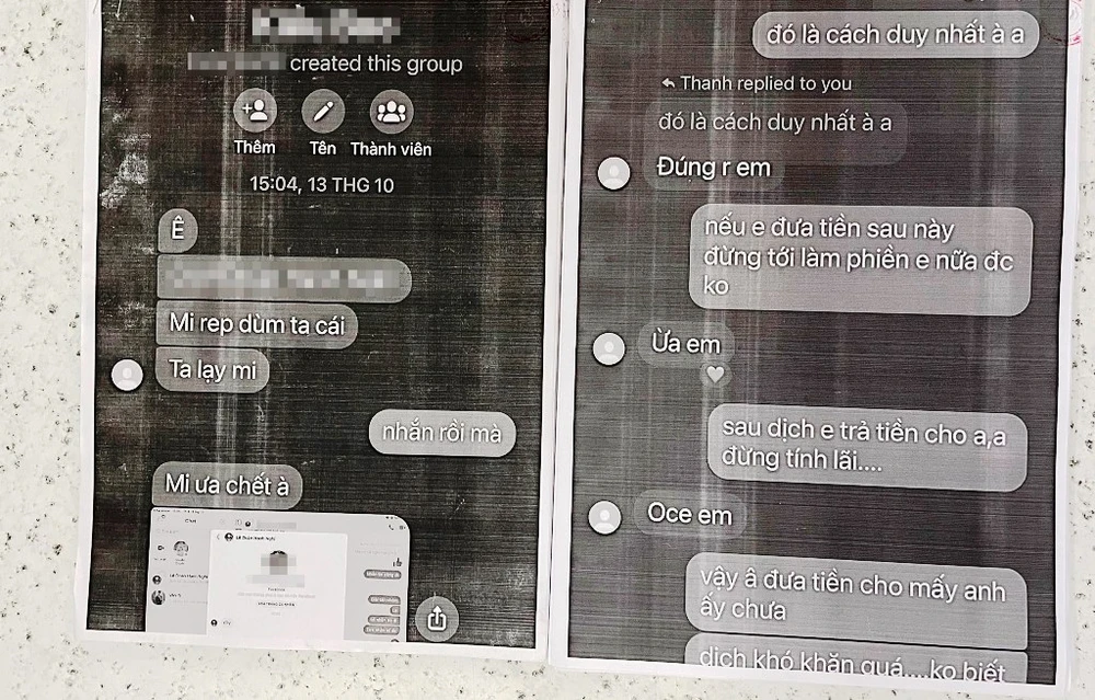 Sáng 3-6-2021, O nhắn tin đe dọa rằng sẽ đánh Ng, làm hại gia đình Ng nếu không trả tiền. Chiều cùng ngày, Ng gom góp, xoay xở được hơn 1,3 triệu đồng đưa cho O. Chưa dừng lại, hai hôm sau, O lại tiếp tục đe dọa, buộc Ng phải đưa đủ 7 triệu đồng nữa. Sau đó, O còn tạo nhóm cho Ng vào để mọi người cùng đe dọa nạn nhân.