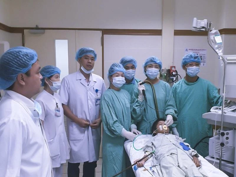 Các bác sĩ đã nội soi phế quản lấy dị vật đường thở cho bệnh nhi Chon. Ảnh: T.TÂN