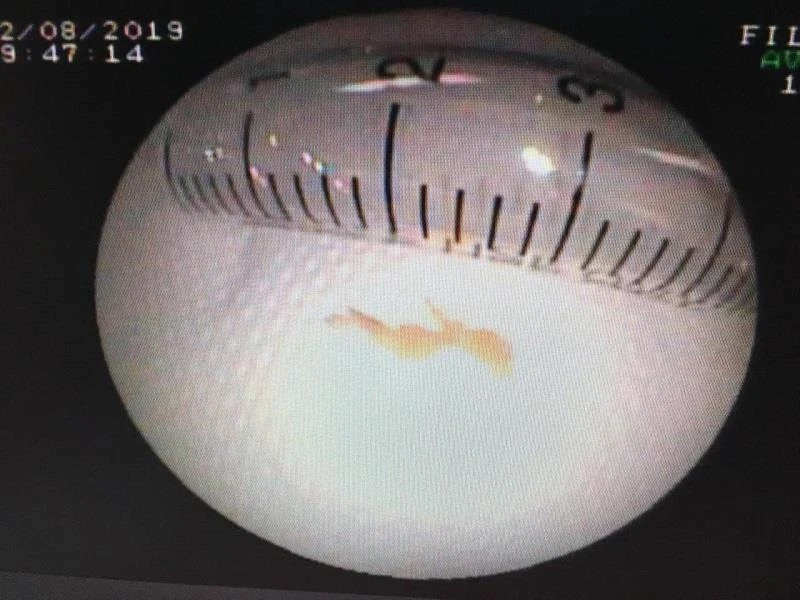 Sau khi làm các thủ tục, sáng 2-8, các bác sĩ ở BV Trung ương Huế đã nội soi lấy thành công dị vật là mảnh xương cá sắc nhọn cắm sâu vào nhánh phế quản, niêm mạc phế quản xung huyết, phù nề nhiều và rất dễ chảy máu.
