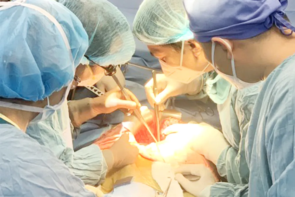 Các bác sĩ tiến hành ghép gan cho bệnh nhi. Ảnh: BVCC