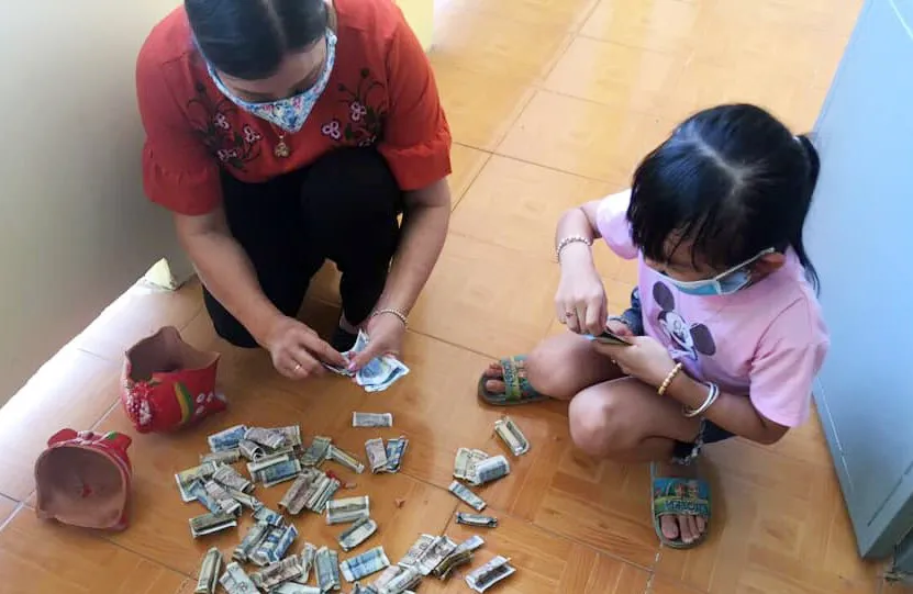 “Thấy cháu bảo sẽ cùng bà ngoại ủng hộ chống dịch bệnh, tôi nói con lấy gì ủng hộ đây. Cháu nói, con sẽ đập heo đất lấy tiền được lì xì và tiền thưởng ủng hộ hết luôn” - mẹ cháu Vy chia sẻ.