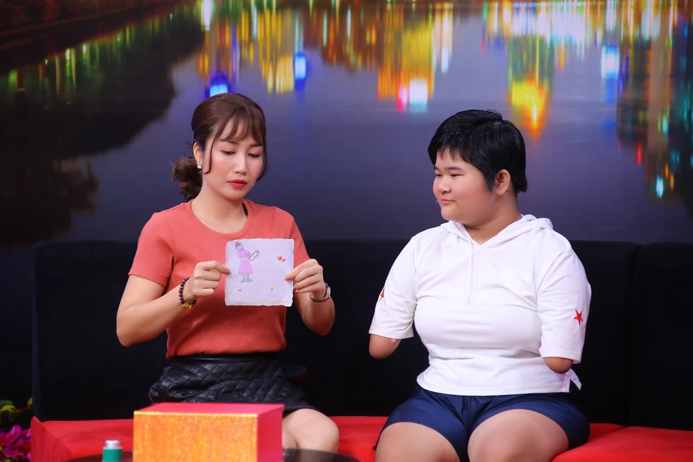 Trong chương trình, cô bé 11 tuổi thổ lộ: “Ba con làm ở công ty in, mẹ ở nhà đi bán cá và thỏ. Con thường phụ mẹ đi bán. Trong các môn học, con thích nhất là vẽ. Con thích vẽ ba mẹ, chị hai và bác sĩ. Con ước mơ làm bác sĩ để chữa bệnh cho người nghèo nhưng con bị khuyết tật, nên chỉ ước như vậy thôi!”.