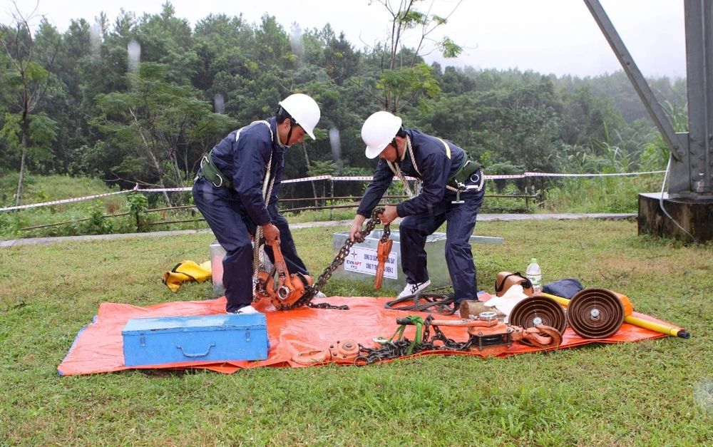 Các thí sinh tham gia phần thi thực hành trên đường dây 500kV.