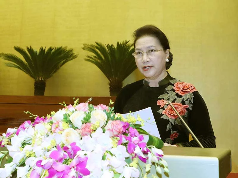 Chủ tịch QH Nguyễn Thị Kim Ngân phát biểu bế mạc kỳ họp thứ 4 QH khóa XIV. Ảnh: TTXVN
