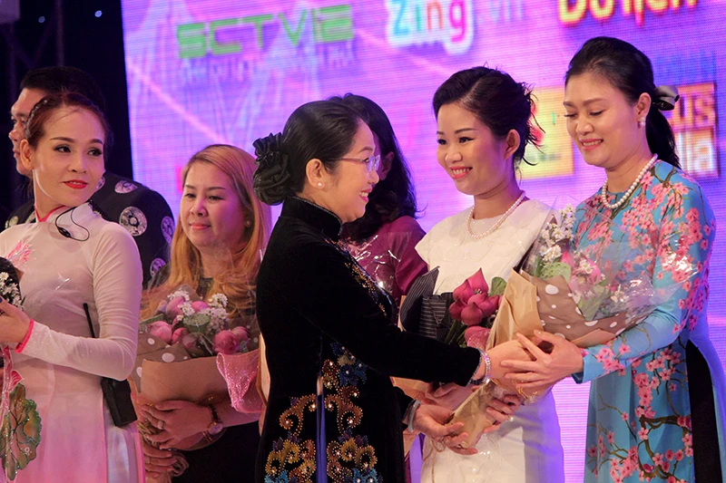 Bà Võ Thị Dung - Phó bí thư Thành ủy TP.HCM tặng hoa cho các cá nhân, tập thể có nhiều đóng góp cho lễ hội.