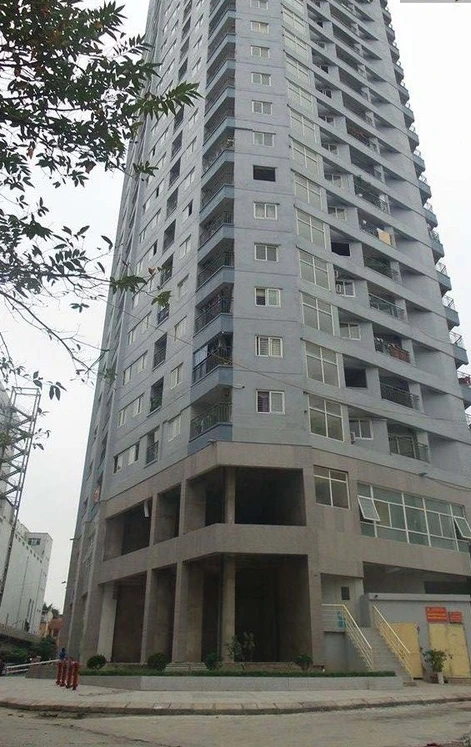 Tòa nhà CT2 nơi cháu bé bị rơi xuống.