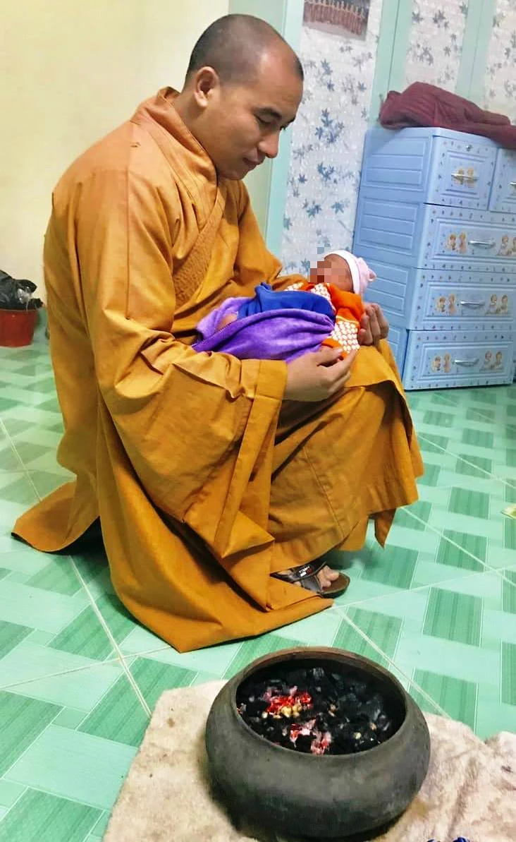 Đứa trẻ sơ sinh đang được sưởi ấm, chăm sóc trong chùa Chí Linh.