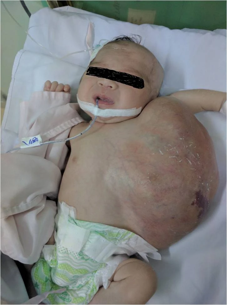 Bệnh nhi với khối bướu "khủng" trên cơ thể.