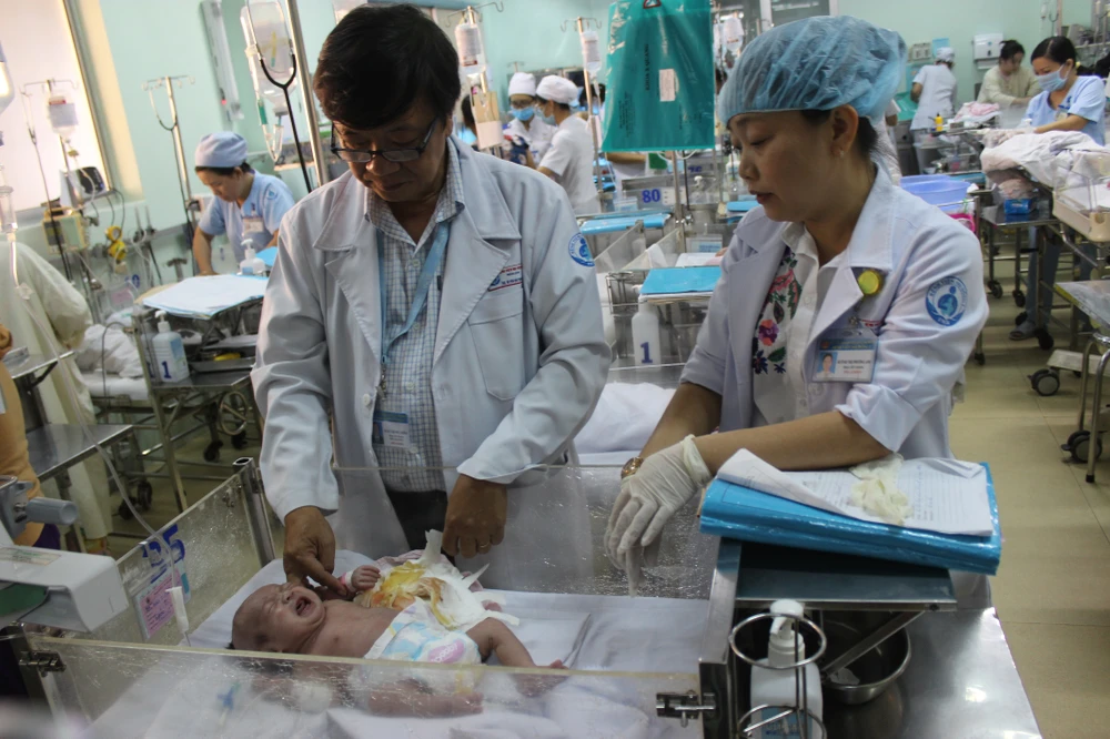 | Chăm sóc cháu tại phòng hồi sức sơ sinh, bà Trần Thị Thảo, bà ngoại bệnh nhi, vui mừng khi cháu gái được các bác sĩ cứu sống và loại khối u "khủng" ra khỏi cơ thể. Bà kể thời gian đang mang thai, mỗi tháng mẹ bệnh nhi đều đi siêu âm. Đến tháng thứ năm thì bác sĩ ở Tiền Giang phát hiện bào thai có hiện tượng lạ nên chuyển lên BV Từ Dũ. Tại đây, sau khi siêu âm, bác sĩ thông báo cho con gái bà biết có u bạch huyết nằm trong thai và hẹn tái khám nhưng không yêu cầu bỏ thai. Đồng thời trấn an thai phụ là có bác sĩ sẽ phẫu thuật được. “Bên ngoại, bên nội đều lo hết ráo vì không biết cái u đó là cái gì, tưởng lớn bằng nắm tay. Không ngờ khối u lại ôm bự dài thân thể nó. Lúc đó chỉ biết khóc chứ không biết làm gì cả” - bà Thảo nhớ lại. |