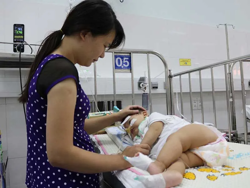 Trước đó, sau khi điều trị một thời gian ở BV Nhi đồng 2, các bác sĩ đã cho gia đình đưa bé về nhà chăm sóc vì tình hình đã khá hơn. Nhưng về nhà được khoảng một tháng, Thanh Bình lại sốt và phải nhập viện trở lại.