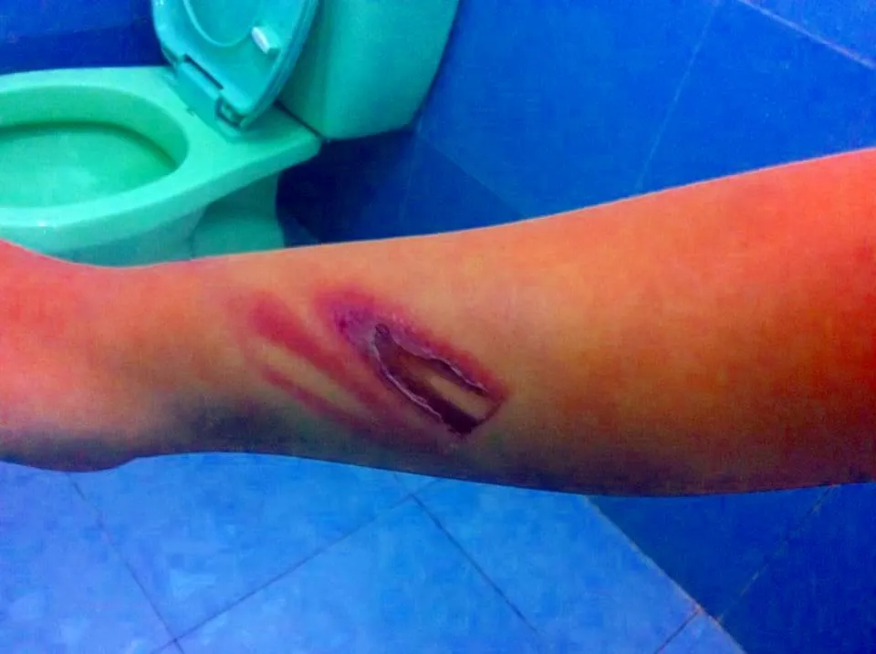 Bà Hương tức tốc đến nơi thì ngã quỵ khi thấy khắp nơi trên thân thể con trai hằn những vết roi bầm tím, nhiều vết lở loét sâu, rướm máu đã sắp thành sẹo.