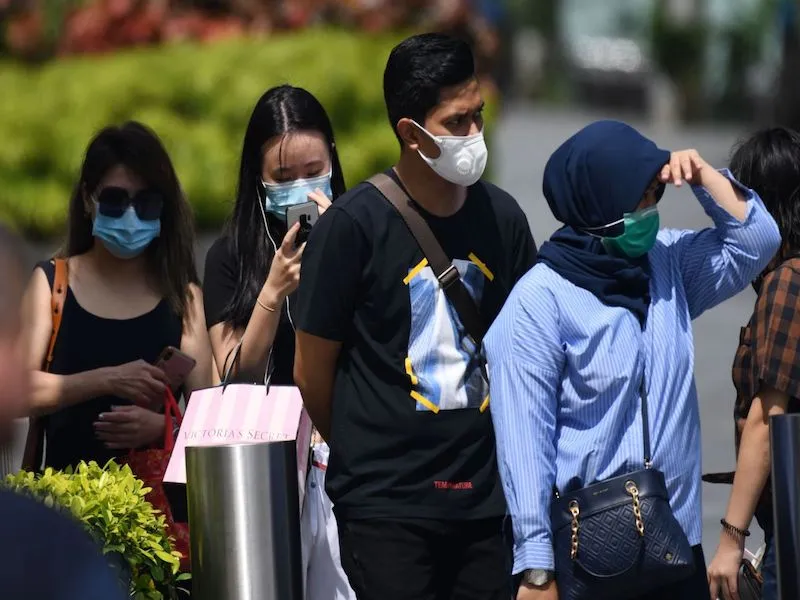 Người dân Singapore đeo khẩu trang trên đường phố ngày 4-2.