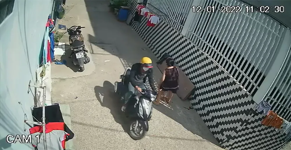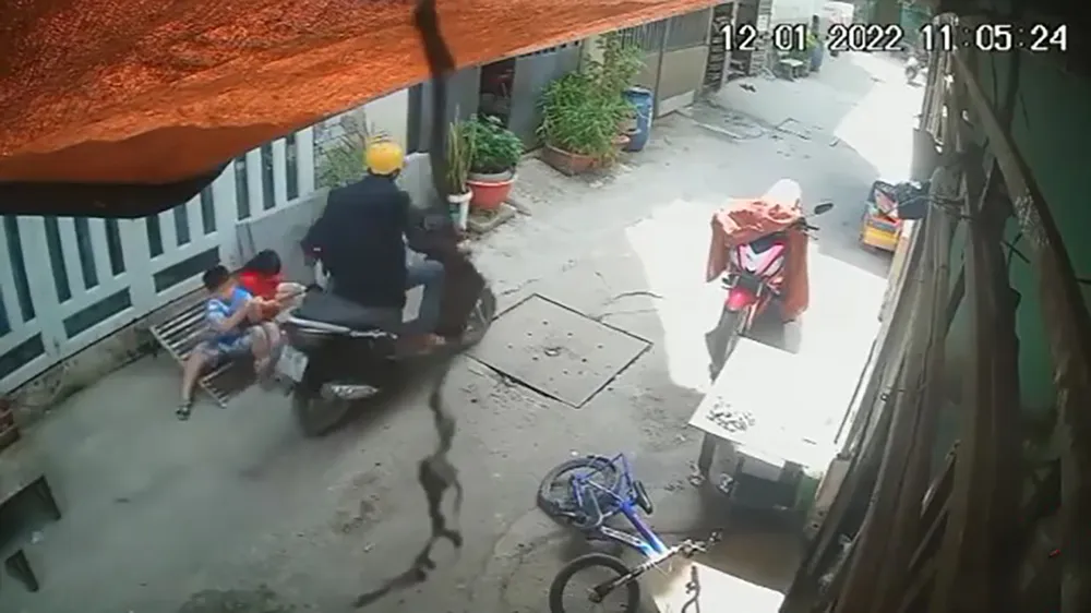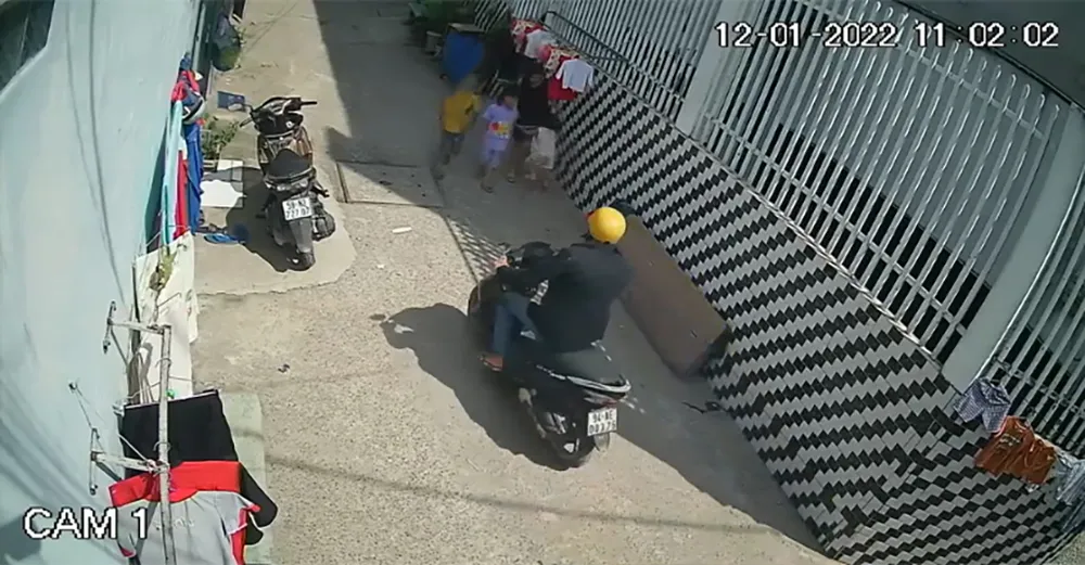 Người này chạy đến cuối con hẻm rồi quay ngược trở ra, khi đi ngang qua nhà chị T thì phát hiện bé trai đang ngồi ở bậc thềm chơi với em gái nên áp sát, cướp giật điện thoại đang cầm trên tay.