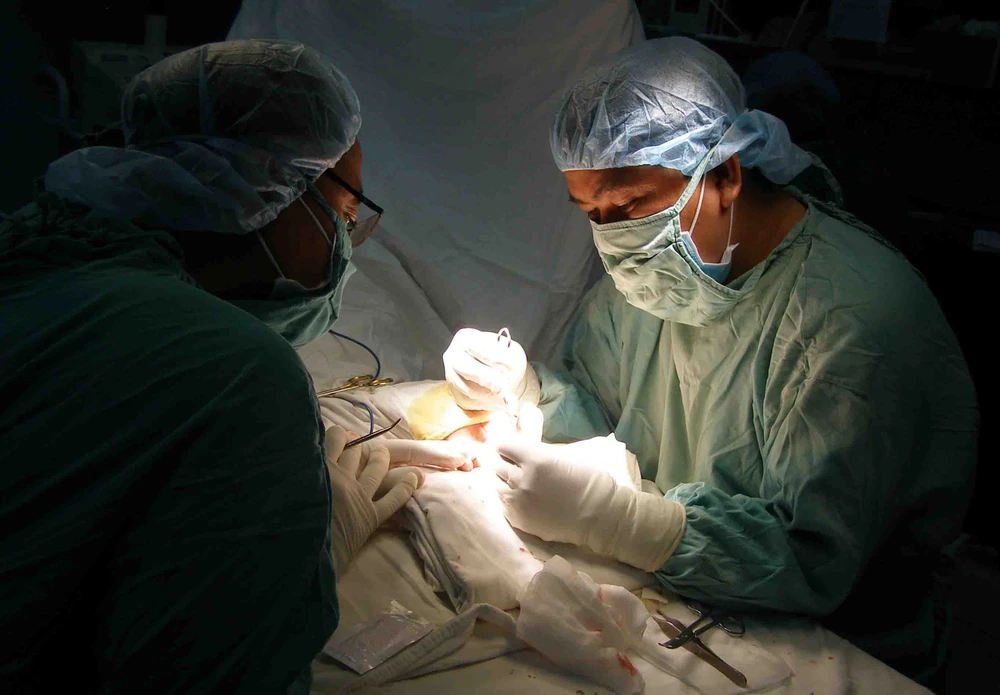 Các bác sĩ đang xử trí bàn tay dập nát của cháu H. do pháo nổ. Ảnh: BVCC