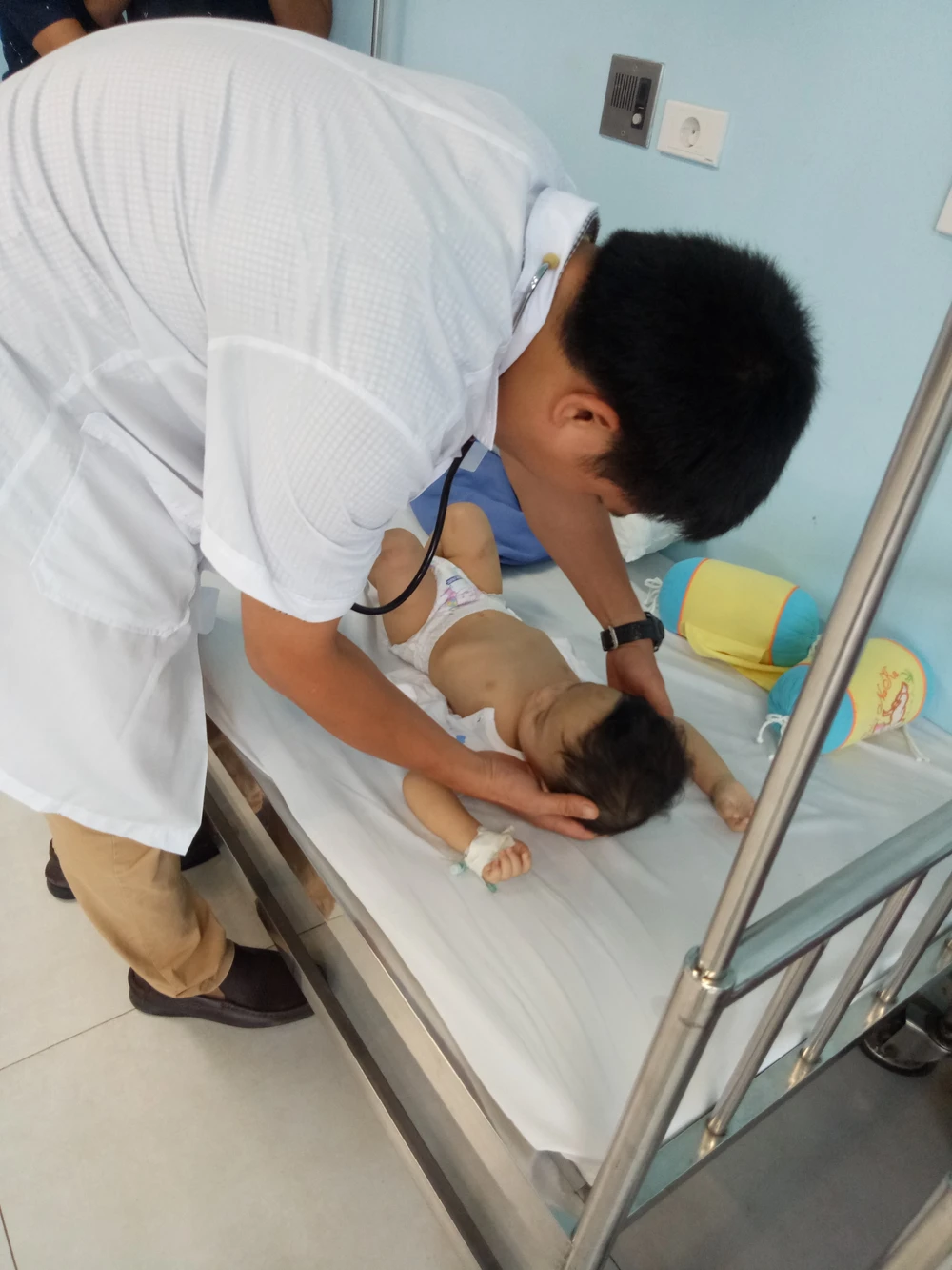 BS BV Nhi Trung ương đang thăm khám cho bé P.