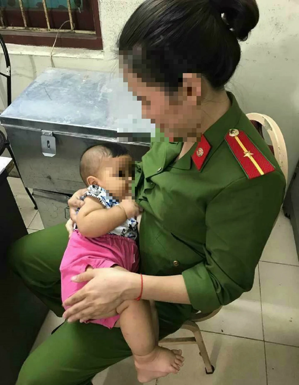 Ngày 10-6, mạng xã hội Facebook chia sẻ hình ảnh một bé trai đang được nữ cảnh sát tại Hà Nội cho bú vì quá đói. Theo thông tin đăng tải, sự việc xảy ra tại phường Mỹ Đình 2 (Nam Từ Liêm, Hà Nội), bé trai trong bức ảnh bị người thân bỏ rơi, còn nữ chiến sĩ cảnh sát là cán bộ công an phường sở tại.