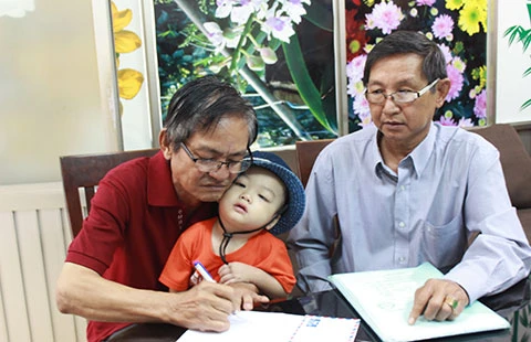 Ông Liêm làm thủ tục nhận bé Bo về nhà. Ảnh: H.LAN