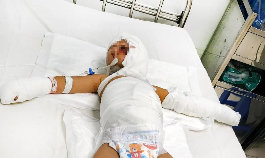 Bé Đ. sau hơn một tuần điều trị vết bỏng ở nhiều nơi, chiếm khoảng 10% diện tích cơ thể đã bình phục và xuất viện. Còn bé C. vẫn nằm viện với nhiều vết bỏng ở vùng mặt, hai tay, hai chân và vùng bụng với diện tích khoảng 25%. Mức độ bỏng sâu độ 2 gây đau đớn và nhiễm trùng nặng.