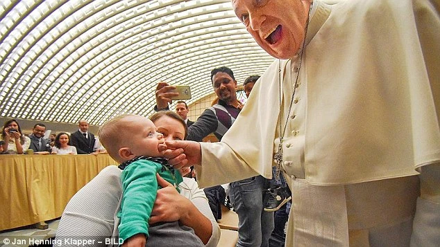 Cậu bé bảy tháng tuổi đã gây ấn tượng với Đức giáo hoàng Phanxico tại buổi lễ chúc phúc ở Vatican, khi kéo tay Ngài đến gần mặt mình và cắn một phát.