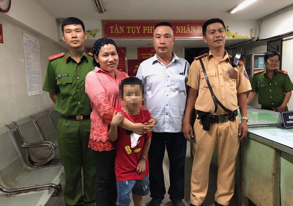 Thật may mắn, 45 phút nỗ lực tìm kiếm, một CSGT đã phát hiện bé trai có những đặc điểm nhận dạng tương tự, đang đi bộ một mình ở khu vực gần đường hầm sông Sài Gòn nên đã đưa cháu bé về trụ sở Công an phường Nguyễn Thái Bình, quận 1.