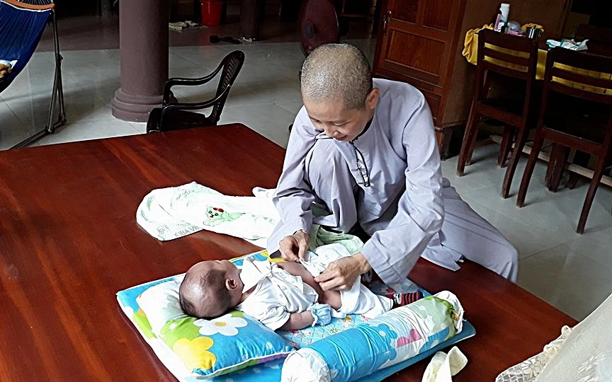 Ngày 3-6, Ni trưởng Thích nữ Mỹ Thái, trụ trì chùa Bửu Lâm (phường Phước Mỹ, TP Phan Rang-Tháp Chàm, Ninh Thuận), cho biết chính quyền địa phương đã đồng ý cho chùa nuôi bé trai sơ sinh bị bỏ rơi trước cổng chùa.