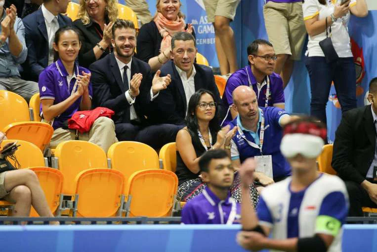 Beckham đến Singapore nhân chuyện đảo quốc Sư tử đang diễn ra ASEAN Para Games và Beckham ký kết một hợp đồng trách nhiệm hỗ trợ xã hội với người khuyết tật.
