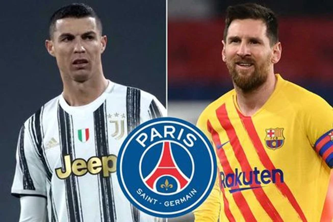Ronaldo và Messi cũng được liên kết với đội bóng cũ của Beckham là PSG. ẢNH: DAILY STAR