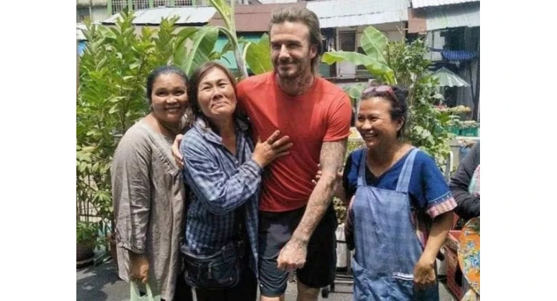 Khi Beckham đi ra các vùng ngoại vi, nông thôn ở Bangkok, không khó để mọi người nhận ra kể cả những người phụ nữ quanh năm chân lấm tay bùn.