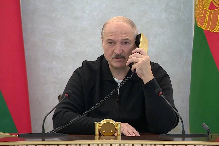 Tổng thống Belarus Alexander Lukashenko điện đàm với người đồng cấp Nga hôm 24-8. Ảnh: BELTA