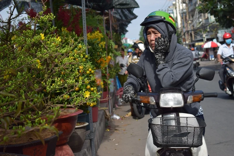 Nhiều người tranh thủ buổi trưa đi lựa hoa về chưng Tết. Ảnh NGUYỄN TRÀ